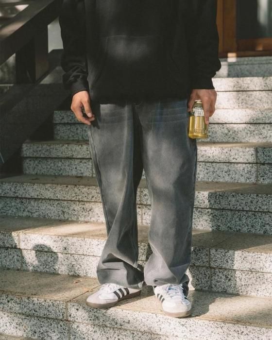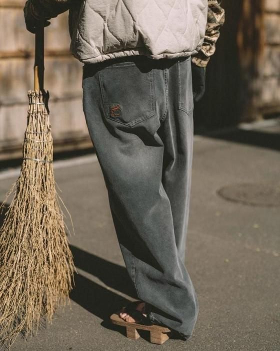 ややストレッチ性のあるデニム生地を使った太めのストレートパンツ。