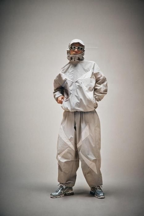 同素材のTRIANGLE JACKETとのセットアップスタイルも可能。